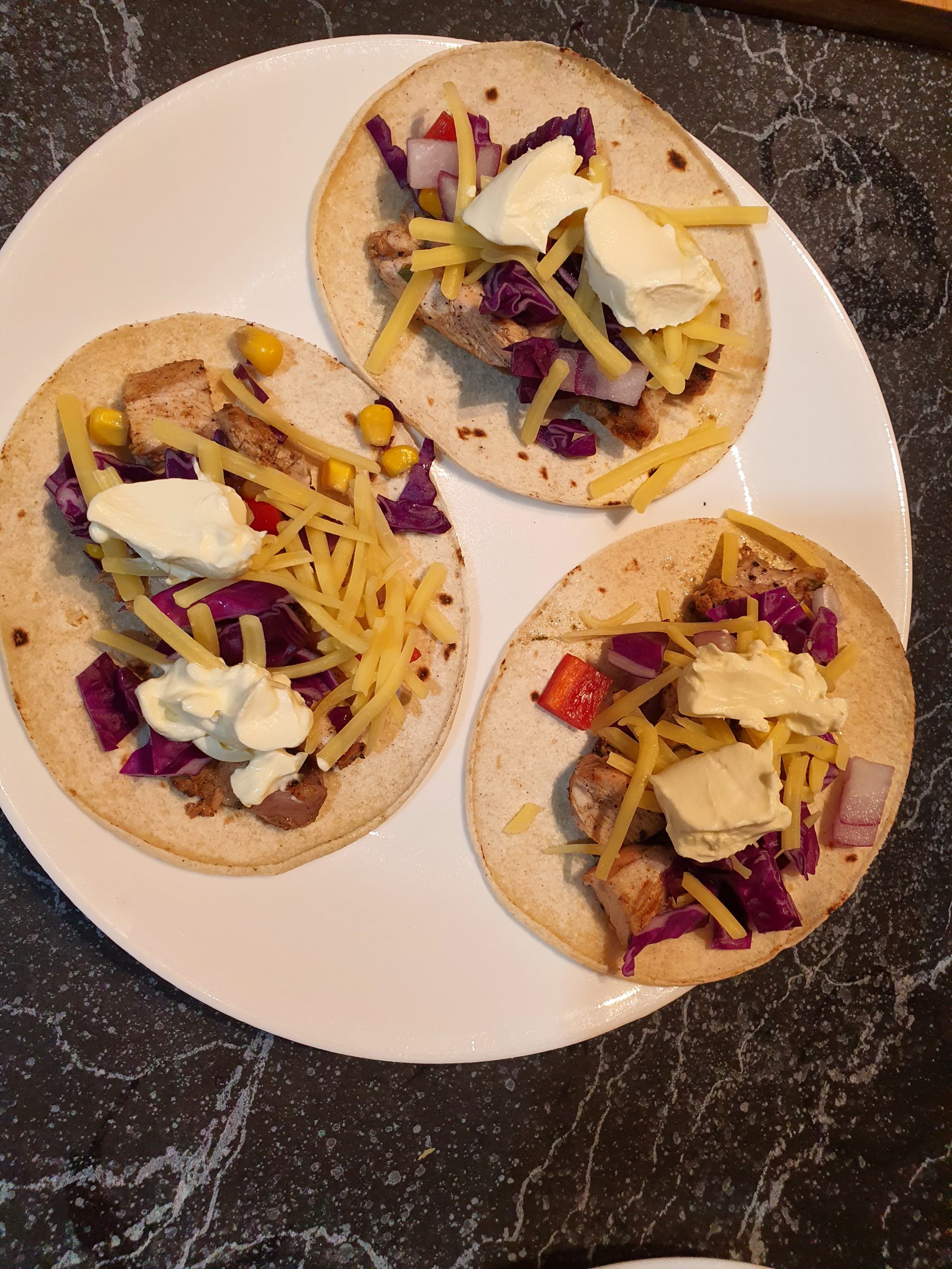 - Dice the chicken. Combine your choice of chicken, salsa, sour cream and cheese to from a tasty taco. Enjoy.